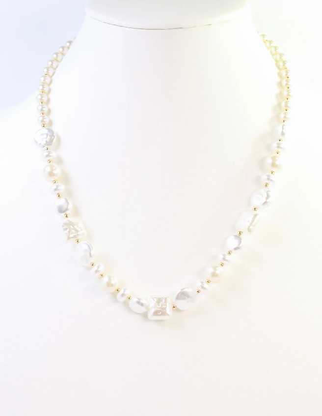 Elevate your style with the Homer Beaded Necklace Pearl, featuring elegant pearls accented by delicate gold beads. This chic accessory adds a refined touch to any outfit, perfect for enhancing your fashionable look with subtle sophistication.