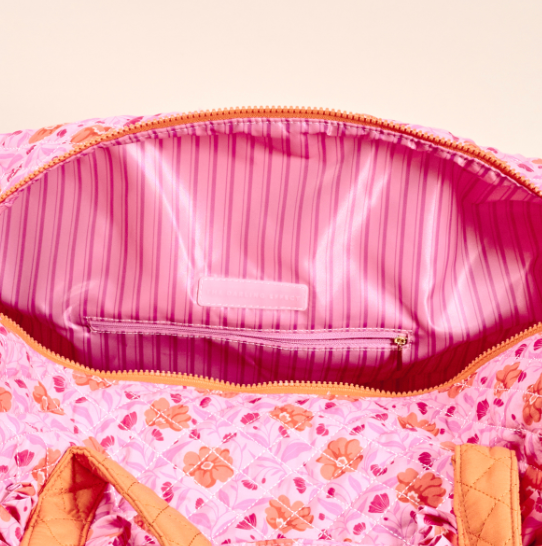 Our On-the-Go Quilted Weekender Bag is the perfect blend of spaciousness and style, designed for all your travel needs! Crafted from soft, quilted fabric, this bag features roomy interior and exterior pockets to keep your essentials organized. The signature darling wipeable lining makes it easy to clean, while the adjustable shoulder strap and pass-through trolley sleeve ensure travel convenience. Soft, quilted, high-quality fabric with wipeable interior lining for easy cleaning Features interior and exterior pockets for organization Includes adjustable shoulder strap Pass-through trolley sleeve for easy travel.