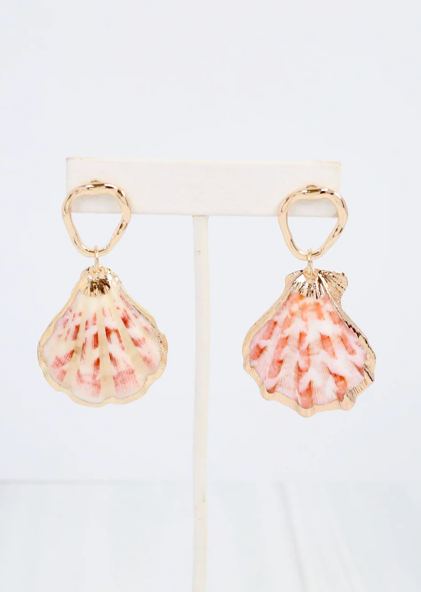 Capture coastal charm with the Palmyra Shell Dangle Earrings in gold. These earrings feature natural shell elements that dangle gracefully, bringing organic beauty and movement to your look. The warm gold finish complements the shell's natural tones, creating a breezy accessory perfect for summer style or year-round coastal vibes.