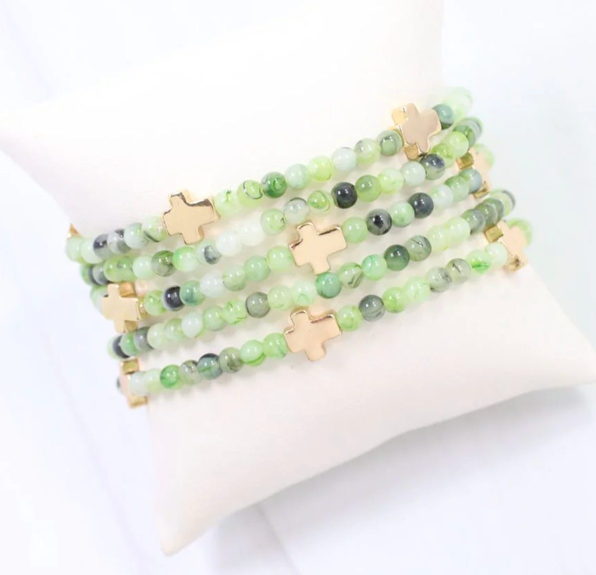 Radiate charm with the Flint Beaded Cross Stretch Bracelet Set in soft pink and green. This five-piece set showcases intricate beaded cross accents in a romantic hue perfect for any occasion. Mix, match, or layer these comfortable stretch bracelets to create your signature look. Timeless style made effortless.