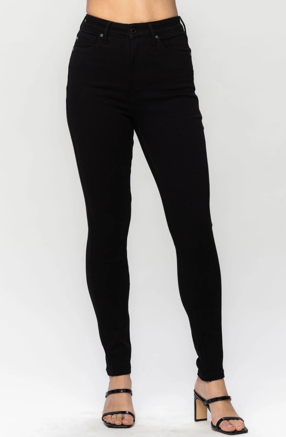 Introducing Judy Blue HW TC Classic Straight Jeans. Elevate your style with these black high waist tummy control jeans. Featuring a classic straight cut and convenient pull on design, these jeans provide both comfort and style. Say goodbye to muffin tops and hello to a flattering silhouette.