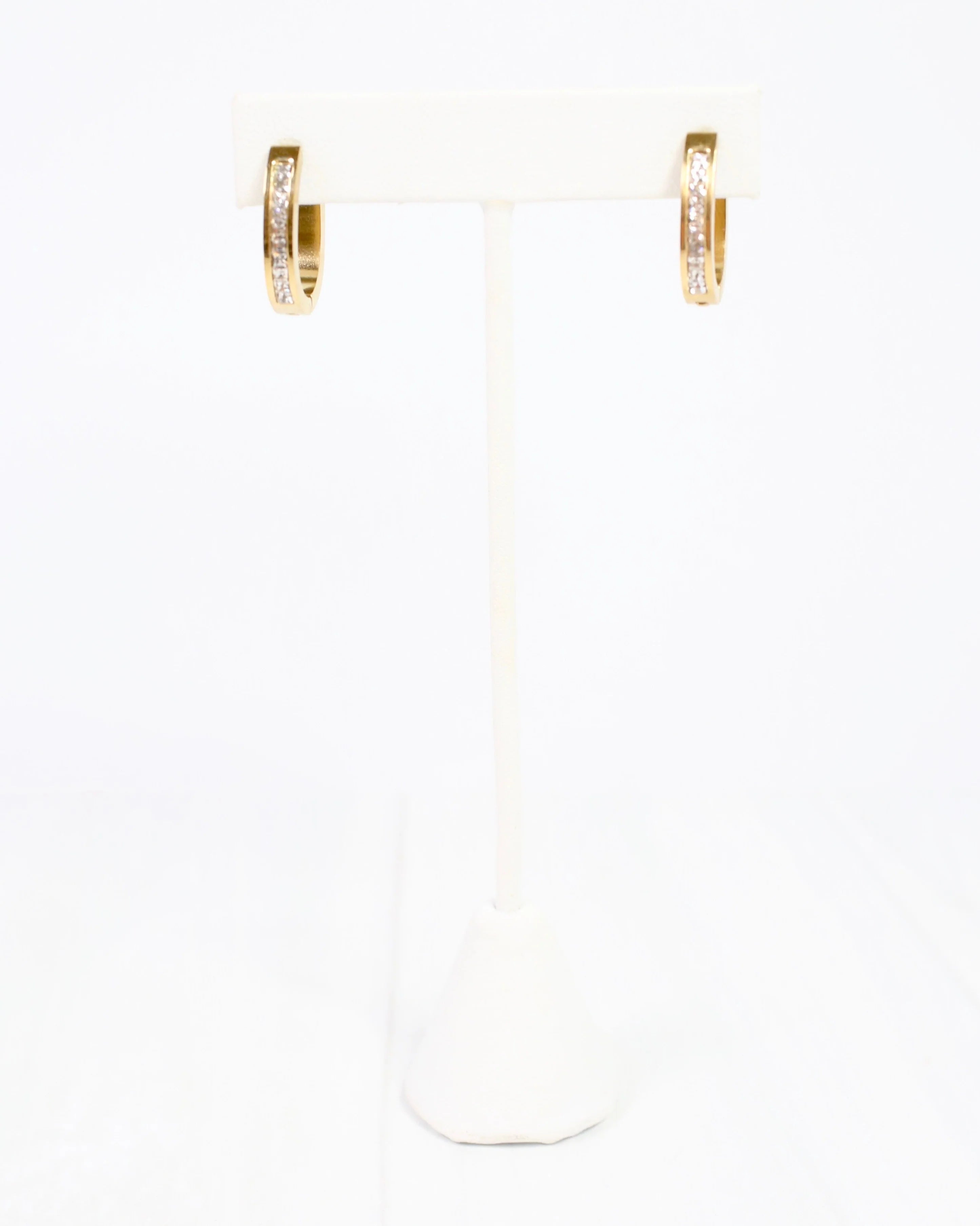 Elevate your everyday style with the Englewood CZ Hoop Earring in Gold. These elegant gold hinged oval hoops feature a sparkling line of cubic zirconia down the center, adding a refined shimmer to any outfit. Designed for comfort and versatility, they transition effortlessly from day to night, making them a chic staple for your accessory collection.