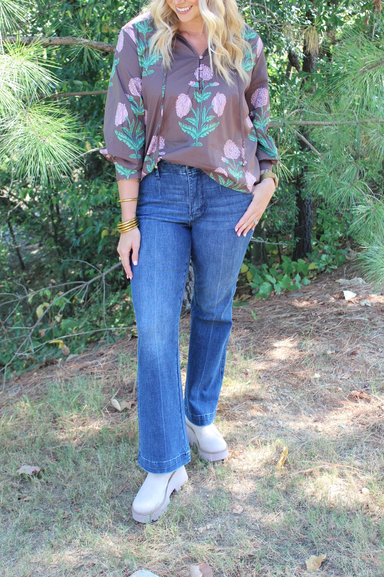 • Mid Rise Bootcut Welt Pockets