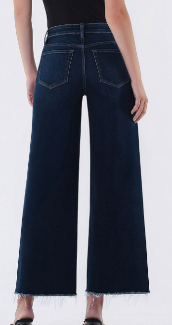 • High rise dark wash ankle wide leg jeans