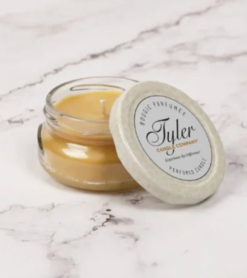 Tyler's 3 oz 1-Wick Candle - the perfect way to enjoy delightful scents in any room! These compact candles are delicately hand-poured and made in the USA with a special soy and paraffin wax blend. Ideal for smaller spaces or trying out new fragrances, these 3 oz candles pack a punch when it comes to filling your room with captivating aromas. Their size makes them a charming addition to your decor, and they also make great gifts for friends and family. Experience the luxury of Tyler's 3 oz 1-Wick Candle and indulge in the rich fragrances that will transform your home today!