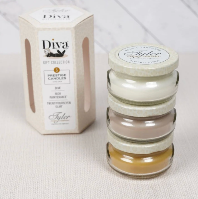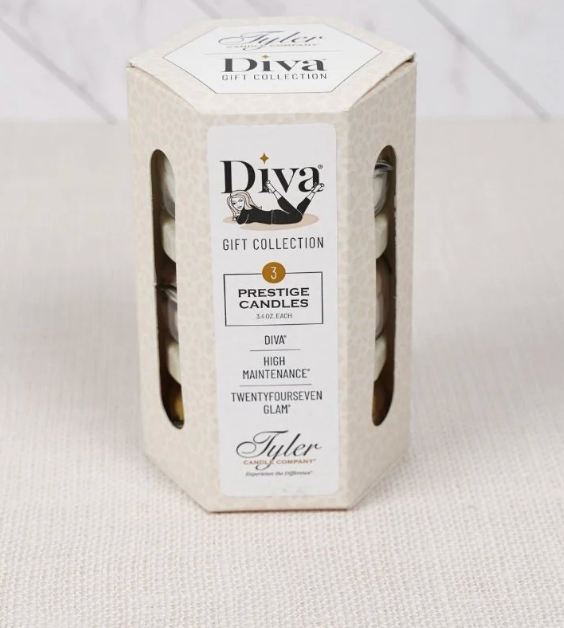 The Diva Gift Collection is created in celebration of women everywhere! This gift set is perfect for thanking the magnificent women who have enriched your life! Each gift collection contains three glamorous 3.4 oz candles. The Diva Gift collection contains the fragrances Diva, High Maintenance, and TwentyFourSeven Glam.