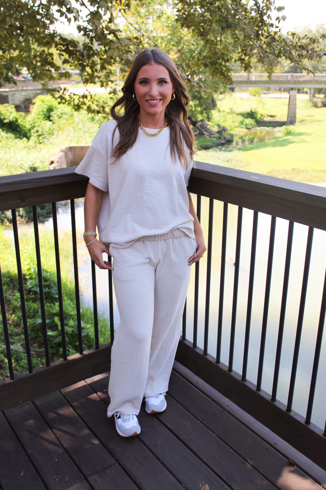 Zenana Slub Short Sleeve Set - Sand Beige